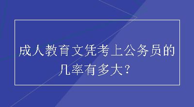 成人教育文凭考上公务员的几率没有明确数据,但国家承认学历的效力使得低学历考生有了更多的就业选择,对低学历考生来说也是一个改变现...