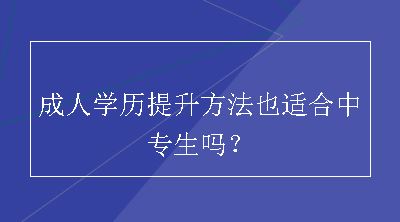 成人学历提升方式也适合中专生,考生也可参加自学考试获取学习时间上的自由调配。至于难度上,中专生参加自考难度较大,考生可以报名参...