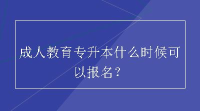 成人教育专升本的报名时间是即日起,想要报读的考生可以提前准备好身份证明、学历证明等报名材料,了解清楚自己适合报读的学校和专业信...