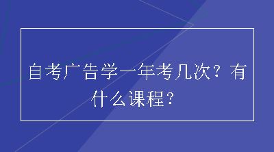 自考广告学每年将有三次的考试机会,分别在1月初,4月初中旬和十月中旬。另外,自考广告学的专业课程比较多,大致在二十门左右。