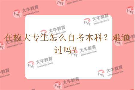 在校大专生是可以自考本科的,大专生想自考本科可以先确定报考专业,确定好专业后就可以直接在报名时间内进行报名。自考本科考试要比统招专升本容易一点,很适合在校大专生报考。