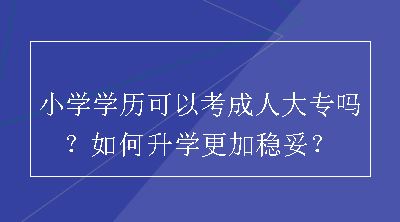 小学学历可以考成人大专,成人教育升学都是比较稳妥的学习方式,若想要更高认同,考生可以尝试自考大专... 查看详情>>