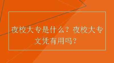 夜校大专是什么?夜校大专文凭有用吗?2020-11-25